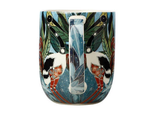 This mug from the Jagaig-Bana-Wabu (Earth-Water-Rainforest) collection features an original design by Australian artist Melanie Hava. Hava’s Aboriginal and Austrian heritage influence her artwork, with inspiration taken from both the reef and rainforest country of Far North Queensland and Austrian architecture and artists like Gustav Klimt. Each design in the range showcases a stunning combination of flora, fauna and landscapes in a vibrant colour palette.